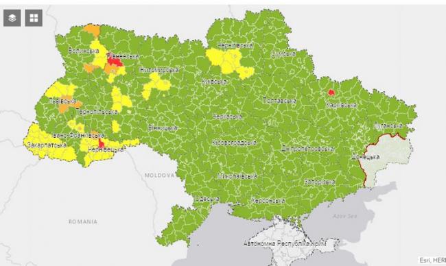 Натомість з «жовтої» до «зеленої» зони потрапили Вінниця, Хмельницький та Новоград-Волинський.