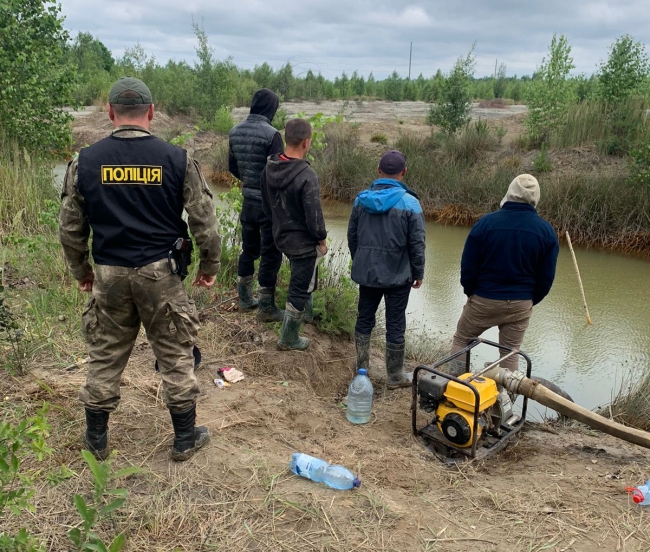 Жителі Володимирця, віком від 24 до 31 років, за допомогою мотопомпи кустарного виробництва шляхом гідророзмиву ґрунту видобували «сонячне» каміння.