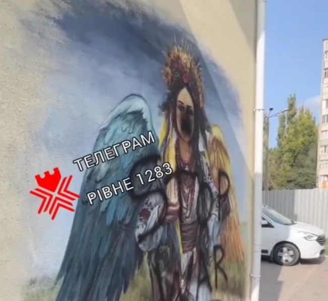 Минуло трохи більше місяця, а невідомі хулігани у Рівному вдруге пошкодили мурал, який написав художник Костянтин Качановський. Очевидці уже виклали фото на місцевому телеграм-каналі. Хто це зробив – невідомо.