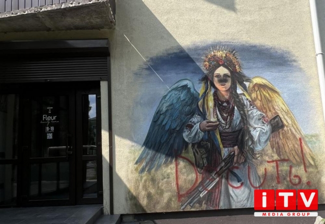 Перехожі помітили, що хтось розмалював мурал на вулиці Данила Галицького, який зображує янгола-Україну зі зброєю в руках. Окрім того, що фарбою спотворили обличчя, так ще й написали слово “досить”.