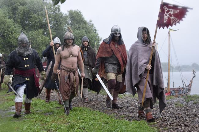 На запливи вийшло 7 човнів: два дракари, одна лодь, довбанки, рибальські човни. Останнім від берега відчалює вже знаменитий «Гунгнір». На ньому серед чоловіків і киянка з клубу реконструкторів «Яртур» Оксана Волохіна, яка пливтиме на такому човні уперше. На ній просто неймовірно розкішний наряд.