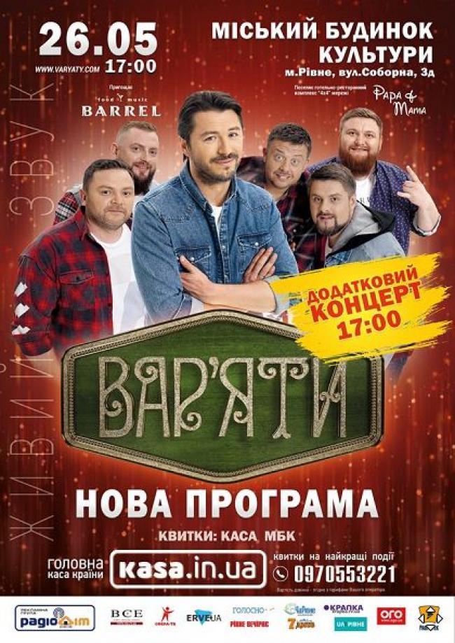 Спершу концерт планували лише на 20:00, проте оскільки усім охочим квитків не вистачило, «Вар’яти» дадуть додатковий концерт о 17:00.