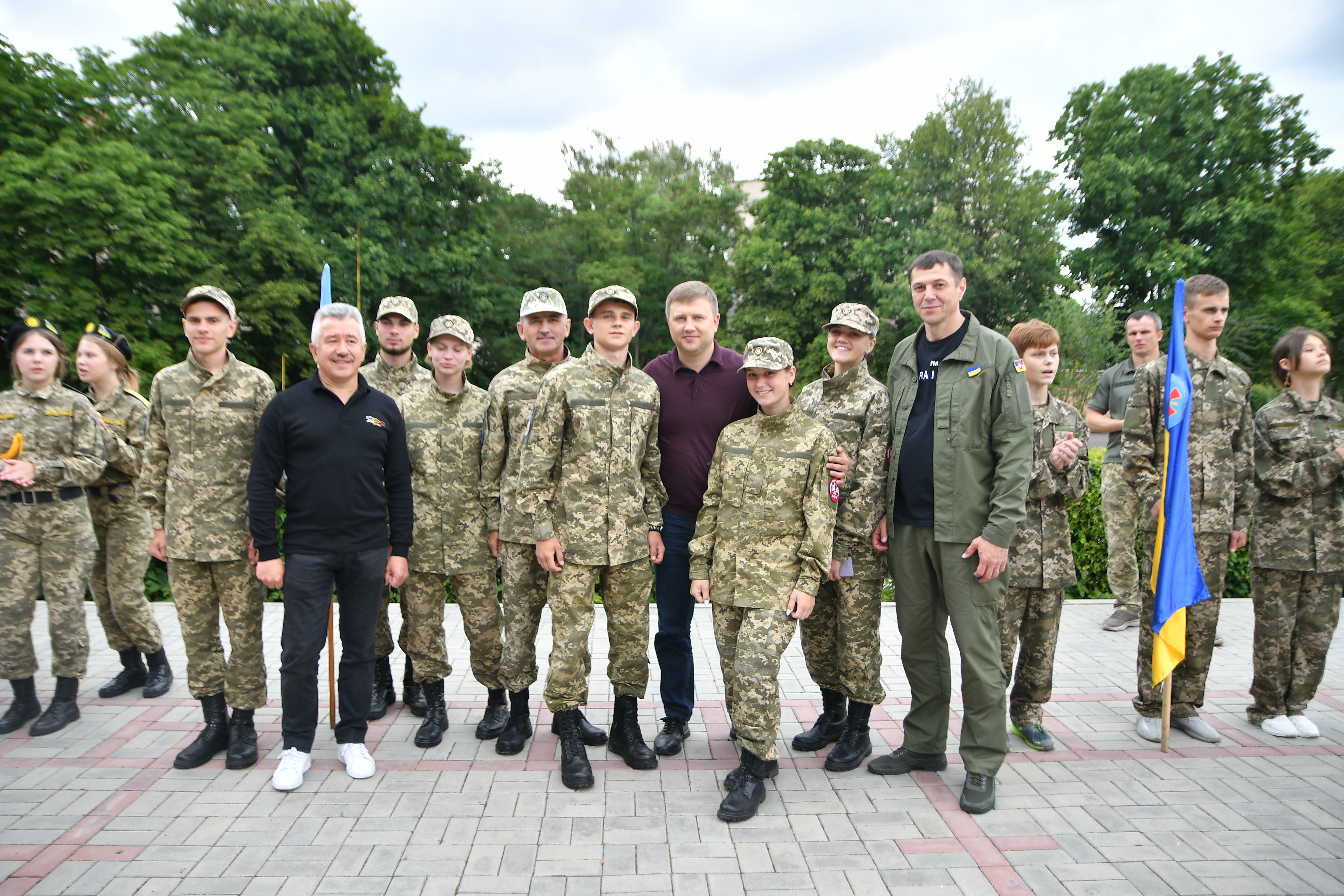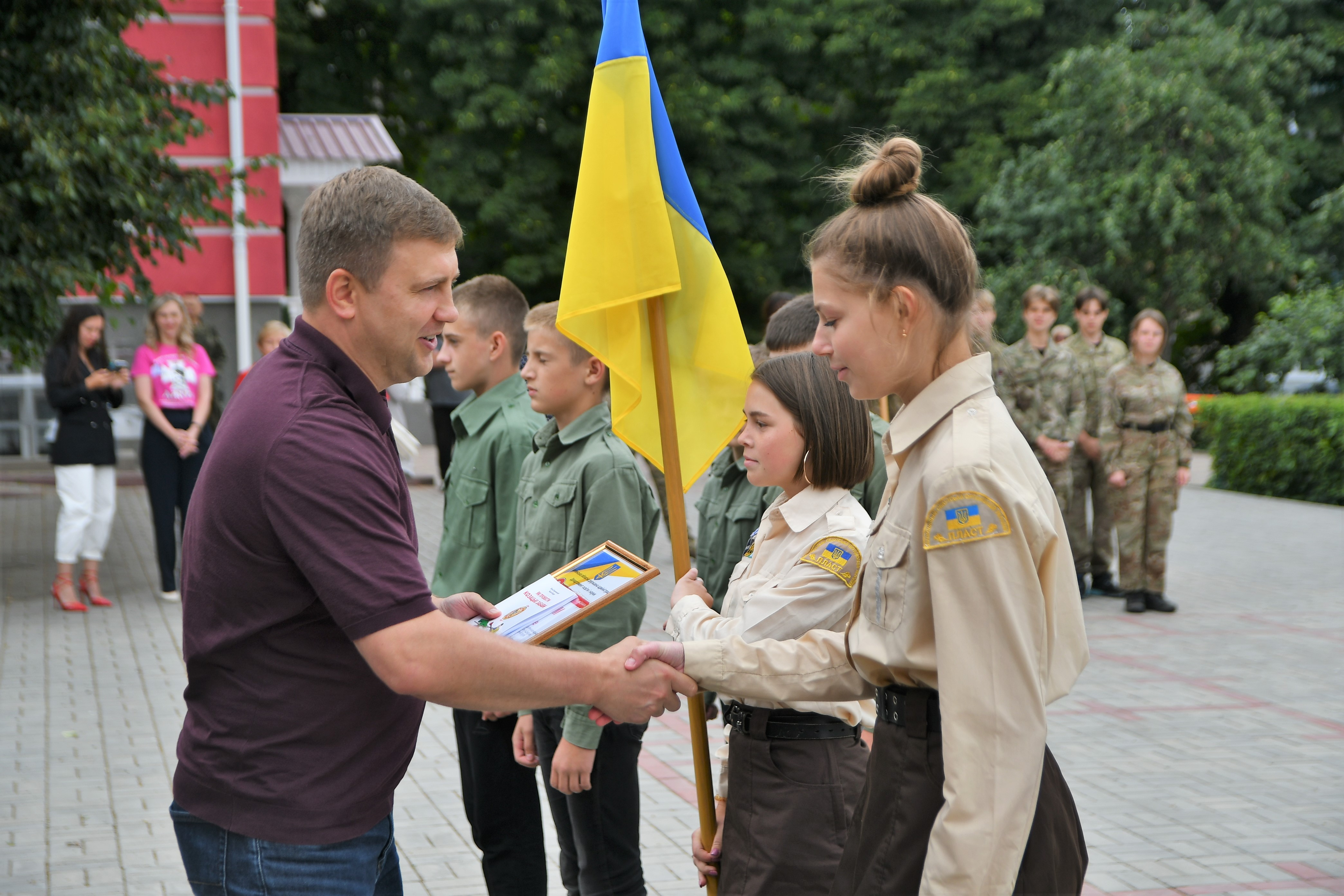 У Рівному синьо-жовтий стяг зустріли урочисто. Його внесла команда-переможців обласного етапу військово-патріотичної гри «Сокіл» («Джура»). Також кожен рій передав прапор підписаний побажаннями для військових на передовій.
