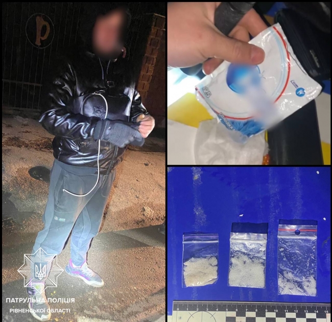 Під час спілкування 34-річний рівнянин почав нервувати, тому поліцейські вирішили провести поверхневу перевірку. Охоронці порядку виявили три поліетиленові пакетики із білою кристалоподібною речовиною, схожою на наркотичну, яка була захована серед жувальних гумок.