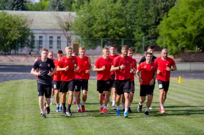 Після успішного проходження медичного огляду команда провела тренування на стадіоні Національного університету водного господарства та природокористування.