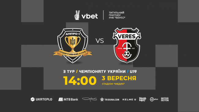 Нагадаємо, що головні команди Дніпра-1 та Вереса зіграють також сьогодні, 3-го вересня. Початок – о 13:00. Ця гра пройде на ужгородському Авангарді. А переглянути матч на великому екрані у Рівному вболівальники зможуть у фан-зоні.