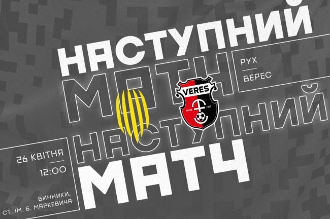 Юнацька команда народного клубу Верес зіграє матч двадцять шостого туру чемпіонату U19 проти Руху у Винниках в п'ятницю, 26-го квітня.