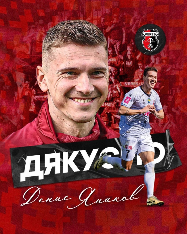 Народний клуб Верес подякував Денису Янакову за співпрацю і побажав успіхів у подальшій кар’єрі.