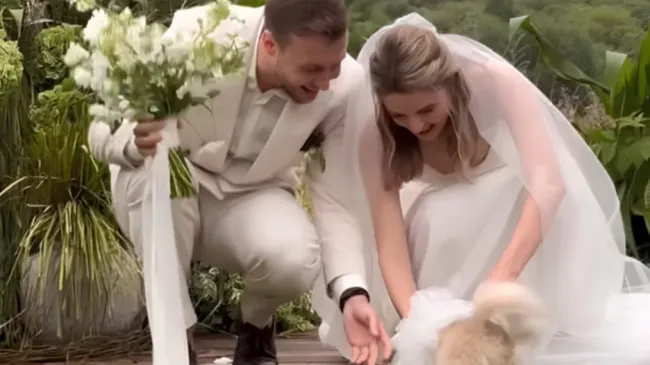 Одним з наймиліших моментів на весіллі було те, що обручки молодятам приніс їхній песик Брі. Собачка була вбрана в білий бантик та на сто відсотків впоралася зі своїм завданням.