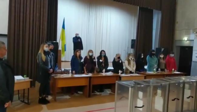 Як повідомляє Комітет виборців України, свою роботу велика дільниця, що знаходиться в клубі селища Новий двір розпочала із державного гімну України.