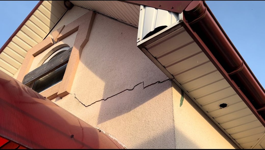 Від вибуху на будинку з’явилися тріщини, були пошкоджені балки, крокви, зруйновані вікна та двері. Також зірвало шифер з даху сараю, загорівся паркан.