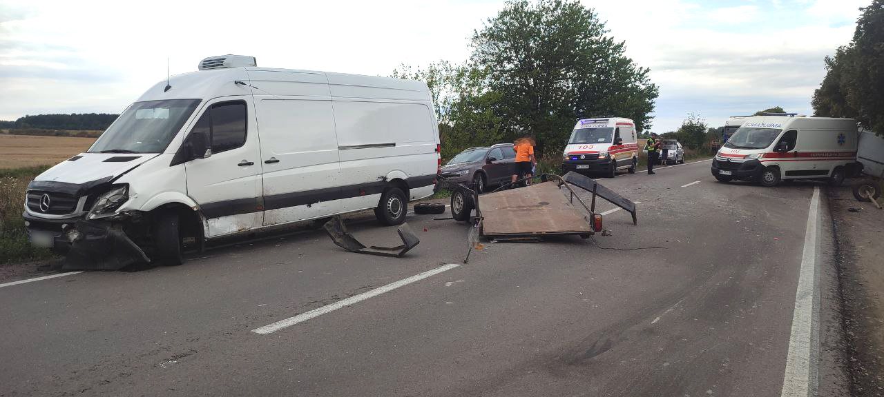 Поліцейські на місці події попередньо встановили, що під час руху в спецавтомобіля «МАЗ» від’єднався причеп, який викинуло на смугу зустрічного руху, де в нього в’їхав мікроавтобус «Mersedes Benz».