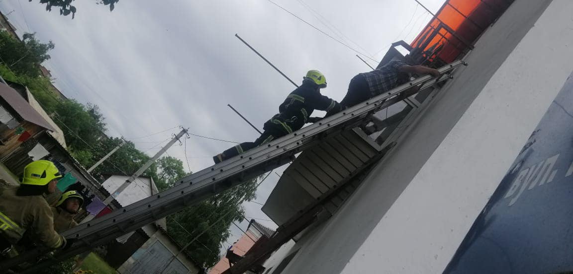 Рятувальники приїхали і спустили нерозважливого містянина на землю. Жодних травм чоловік не отримав. Від пережитого шоку він ніяк не міг оговтатись, отож навіть “дякую” дівчатам, які першими намагались допомогти, а потім – викликали рятувальників, не сказав.