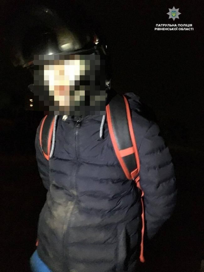 Патрульна поліція Рівненської області повідомляє, що інспектори виявили у мотоцикліста ознаки наркотичного сп’яніння, однак від освідування водій відмовився. На нього склали протокол за керування в стані сп’яніння (по відмові), за невиконання водіями вимог про зупинку та винесли постанову за керування транспортним засобом без відповідного документа.