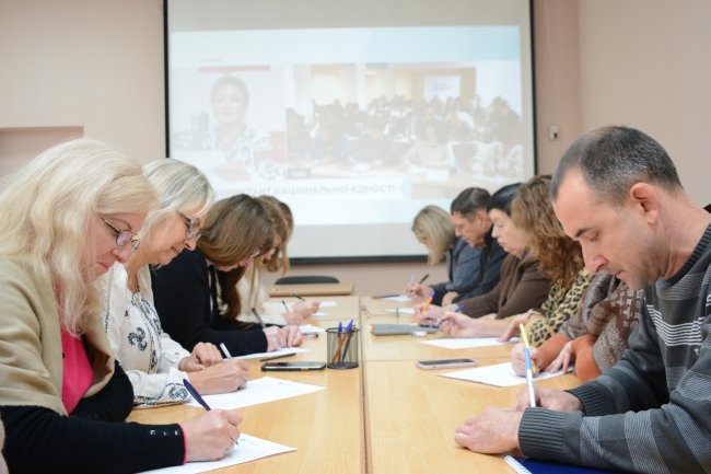 Активно підтримали ініціативу школи та вищі навчальні заклади області. Зокрема, директор інституту соціально-гуманітарного менеджменту Національного університету «Острозька академія» Максим Карповець поділився фото зі студентами зі словами: «Готові до написання цьогорічного Всеукраїнського радіодиктанту національної єдності!».