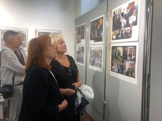 На експозиції представлені фотографії з авторського проекту Олександра Харвата «30 кроків до Незалежності» та експонати із фондової збірки музею.