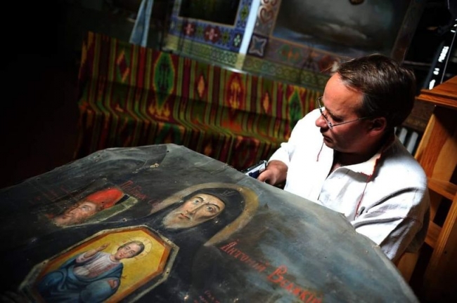 Під час реставрації вирішив зняти фарбу, яка закривала тло навколо образу православного Антонія, тим більше, що просто чорний фон ніякої мистецької вартості не мав. Настоятелю запропонував закрити окладом розчищений фрагмент і знімати оклад лише при потребі. Коли вже майже зняв всі записи з тла, я поїхав додому. Але наступного дня, коли я приїхав в монастир, то католицького святого знову було замальовано чорною фарбою і ікону вже навіть встановили в кіот у церкві.