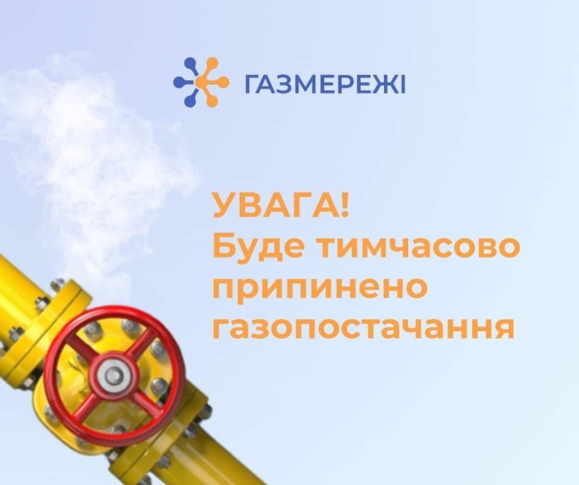 У зв’язку з цим припинять газопостачання 9 квітня.