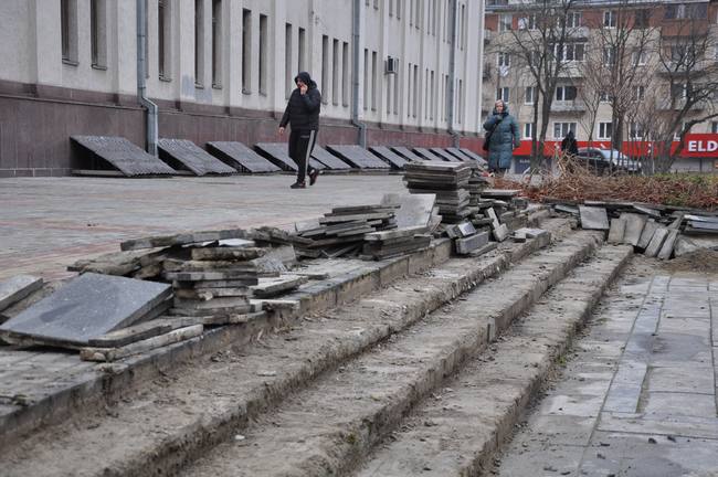 Нагадаємо, ще у 2021 році робітники зняли зі сходів стару гранітну плитку. Ремонт мав початися навесні 2022 року. Однак через війну ремонт сходів відійшов на другий план.