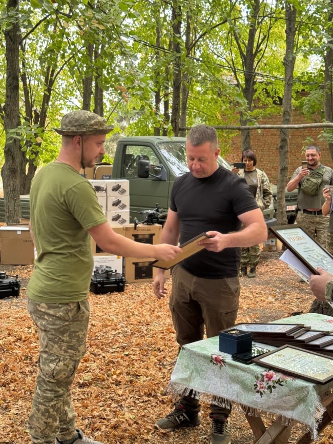 – Радий був зустріти знайомі обличчя та потиснути руки землякам. Вже не вперше навідуємося до хлопців, адже саме це формування складається здебільшого з рівнян. Вони пройшли не одну гарячу точку, і зараз продовжують виконувати надскладні завдання із захисту Батьківщини, – розповідає Віктор Шакирзян. – Передали хлопцям такі необхідні речі та оснащення. Серед іншого квадрокоптери – 9 DJI Mavic 3 Pro, 2 DJI Matrice 30Т, 8 DJI Maviс 3 Thermal та 8 EcoFlow, придбані за кошти міського бюджету, 3 генератора потужністю по 5,5 кіловат, надані Департаментом соціальної політики. Також передали закуплені павербанки та харчі, передані волонтерами Благодійної організації «Фонд Віктора Шакирзяна».
