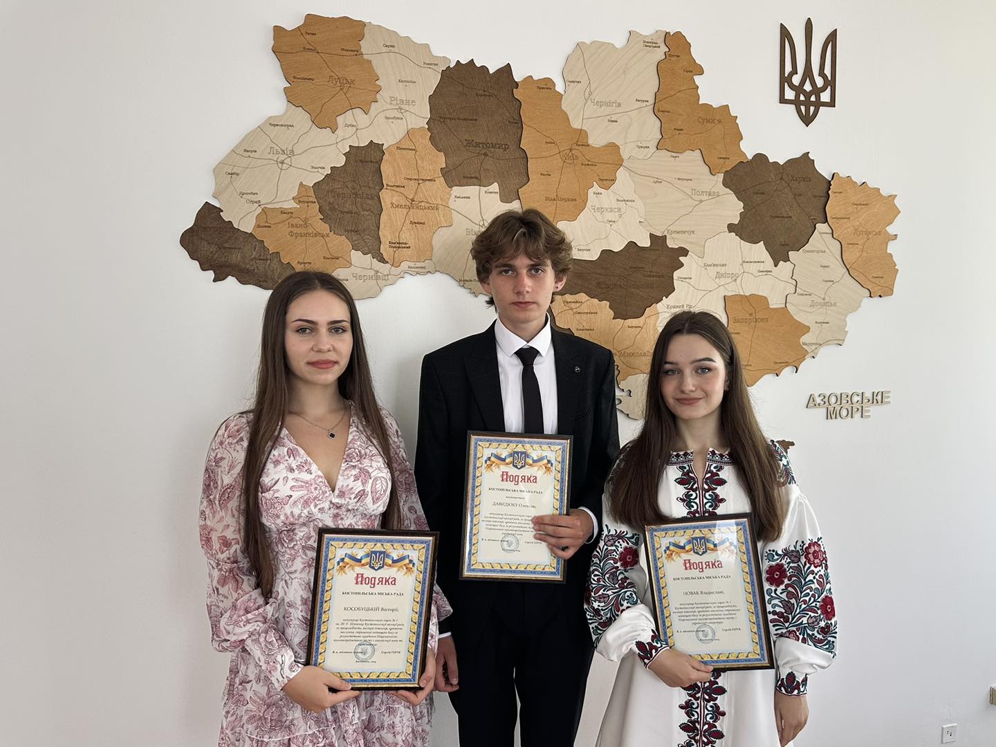 Подяки та сертифікати вручили Вікторії Кособуцькій (ліцей №1), яка склала тест на 200 балів з англійської мови та математики (з математики ученицю готувала Таміла Войтко, з англійської мови – Світлана Пастушенко), випускнику ліцею №3 Олексію Давидюку, який одержав 200 балів на НМТ з української мови, та Владиславі Новак з цієї ж школи – з української літератури. Обидвох учнів підготувала вчителька Надія Онисковець.