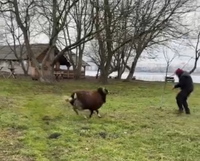 Вивертатися від грайливого барана довелося не тільки овечкам, а й працівникам етнопарку Оствиця, що знаходиться на березі Басівкутського озера.