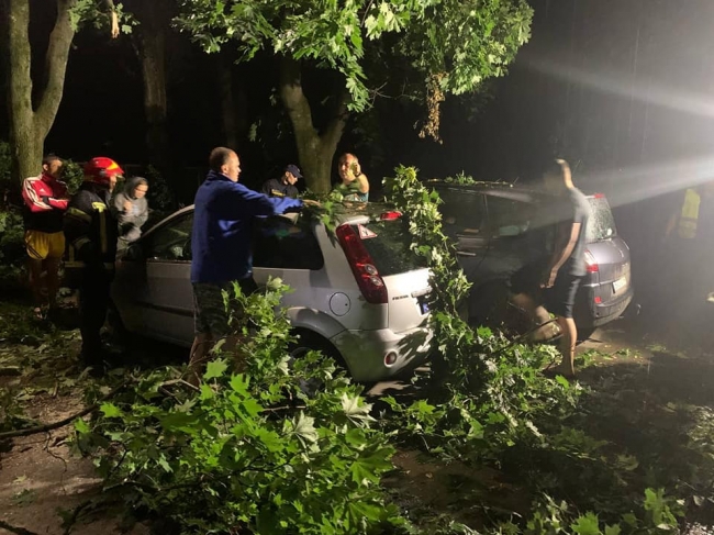 Звільнити машини людям допомагали рятувальники, які за допомогою бензопили розрізали дерево.