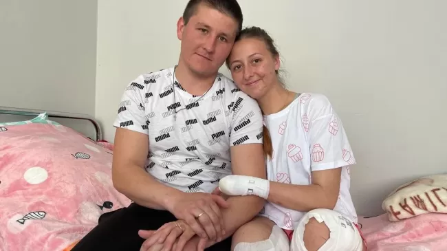 23-річна Оксана поверталася з цивільним чоловіком Віктором додому, коли пролунав вибух. Жінка йшла попереду, тому отримала важкі травми, а її коханий залишився неушкодженим.