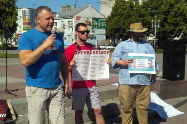 Сьогодні триває дев’ятнадцятий день голодування Олега Сенцова, оголошеного з вимогою звільнити всіх бранців Кремля, серед яких і рівнянин Микола Карпюк. Учасники акції у Рівному, зокрема, зачитали текст звернення до лідерів країн Великої сімки з проханням підняти це питання на їхньому саміті. Також, закликали суспільство підтримати лозунг: “На Чемпіонаті світу з футболу в Росії я вболіваю за політв’язнів”. Присутні пред’явили Кремлю символічну “червону картку”. Нагадаємо український режисер Олег Сенцов був затриманий російськими спецслужбами в анексованому Криму в травні 2014 року за звинуваченням в організації терактів і згодом засуджений до 20-ти років тюрми.