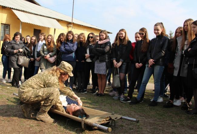 Як зазначила вчитель з основ медичних знань, захисту вітчизни та фізики рівненського навчально-виховного комплексу №19 Ольга Купріян, навчальна група, яка сьогодні присутня тут, складається з дівчат. Більшість їз них на території військової частини вперше, проте їм дуже цікаво, адже саме тут проходять військову службу чимало військовослужбовців-жінок. Серед них і одна із найбільш затребуваних спеціальностей – санінструктор підрозділу.