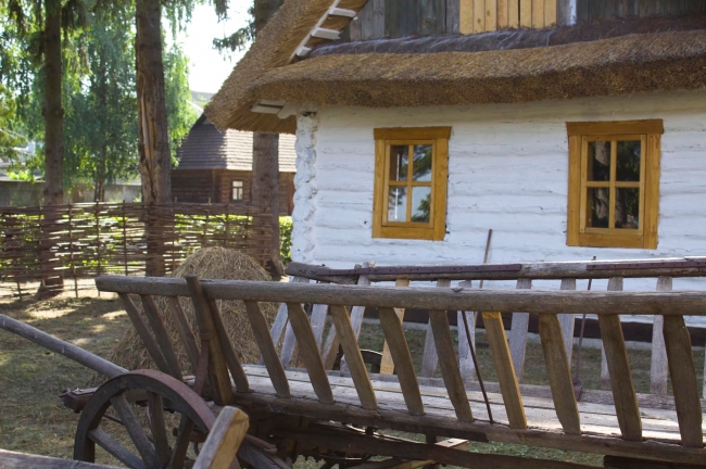 У хаті представлено життя українців більше ста років тому. Сама оселя побудована винятково з натуральних матеріалів, стіни будинку прикрашають ікони та вишиті рушники, а вікна завішані фіранками.