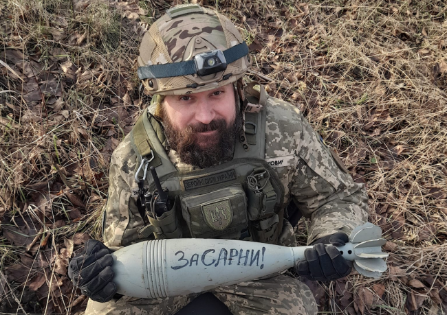 Фотографію з мінометною міною із написом «За Сарни» він опублікував на своїй фейсбук-сторінці.