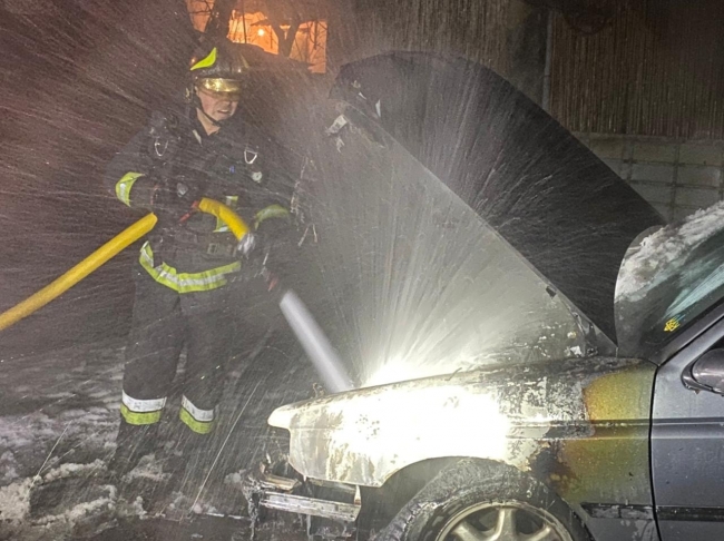 На місце виклику прибули рятувальники. Вони встановили, що горить передня частина транспортного засобу, тож на гасіння оперативно подали вогнегасячі речовини.