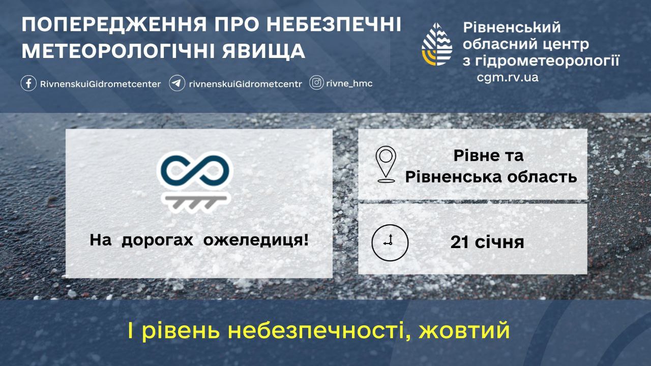 – Хмарно з проясненнями. Без істотних опадів. Вночі та вранці слабкий туман, слабка паморозь. На дорогах ожеледиця.