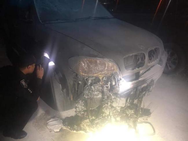 Вогнем пошкоджено передній бампер, передню праву фару, противотуману систему, праве переднє крило. Причина пожежі та збитки встановлюються.