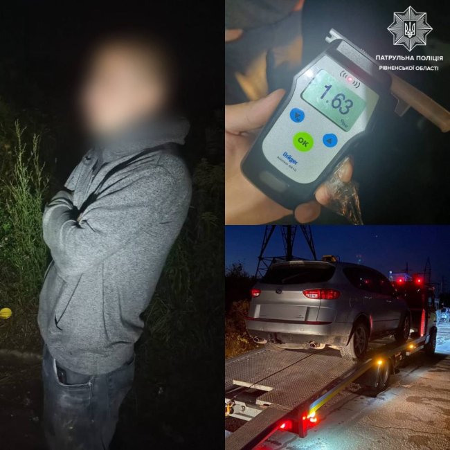 – Під час перевірки документів у 27-річного водія інспектори виявили ознаки алкогольного сп’яніння. Результат огляду — 1,63 проміле. На порушника склали протокол за керування у стані сп’яніння, а автомобіль евакуювали на арештмайданчик, – розповіли у патрульній поліції Рівненщини.