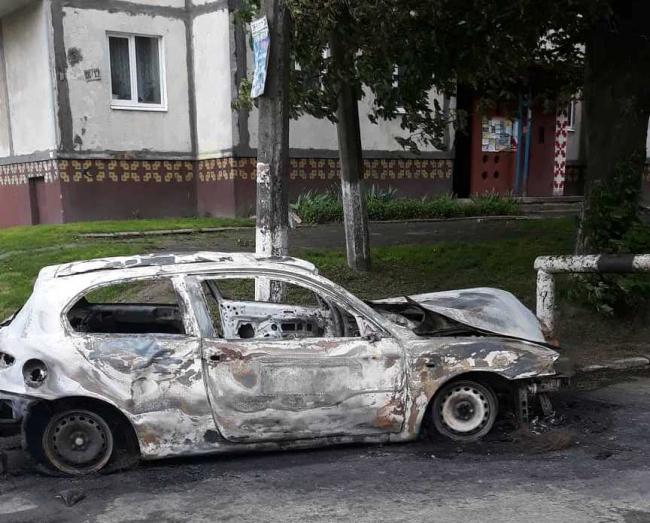 «Альфу Ромео», який стояв біля будинку №10/12 на Гайдамацькій, врятувати не вдалося. Авто згоріло повністю.