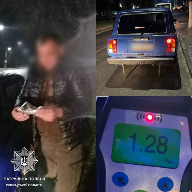 Водій погодився, результат — 1,28 проміле. Патрульні склали на 42-річного водія протокол за ч. 1 статтею 130 (Керування в стані сп’яніння) і постанову за ч. 1 статтею 122 (Порушення вимог дорожніх знаків) КУпАП.