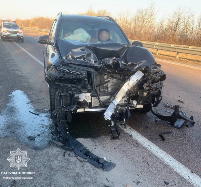 – 29-річний водій автомобіля BMW X7 не вибрав безпечної швидкості та не дотримався дистанції, внаслідок чого в’їхав у вантажний автомобіль Scania з напівпричепом Schmitz, який рухався попереду в попутному напрямку, – кажуть у патрульній поліції Рівненщини.
