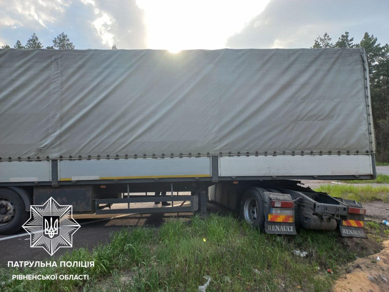 Інспектори встановили, що водій вантажного Renault Magnum не був уважним, не стежив за дорожньою обстановкою, не вибрав безпечну швидкість, не впорався з керуванням, в результаті чого під час виїзду із прилеглої території допустив наїзд на бордюр.