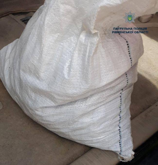 Позашляховик не мав номерного знаку, саме тому патрульні і зупинили авто. Проте коли заглянули всередину, побачили «мішок білого кольору, в якому було каміння ззовні схоже на бурштин», зазначає прес-служба патрульної поліції.