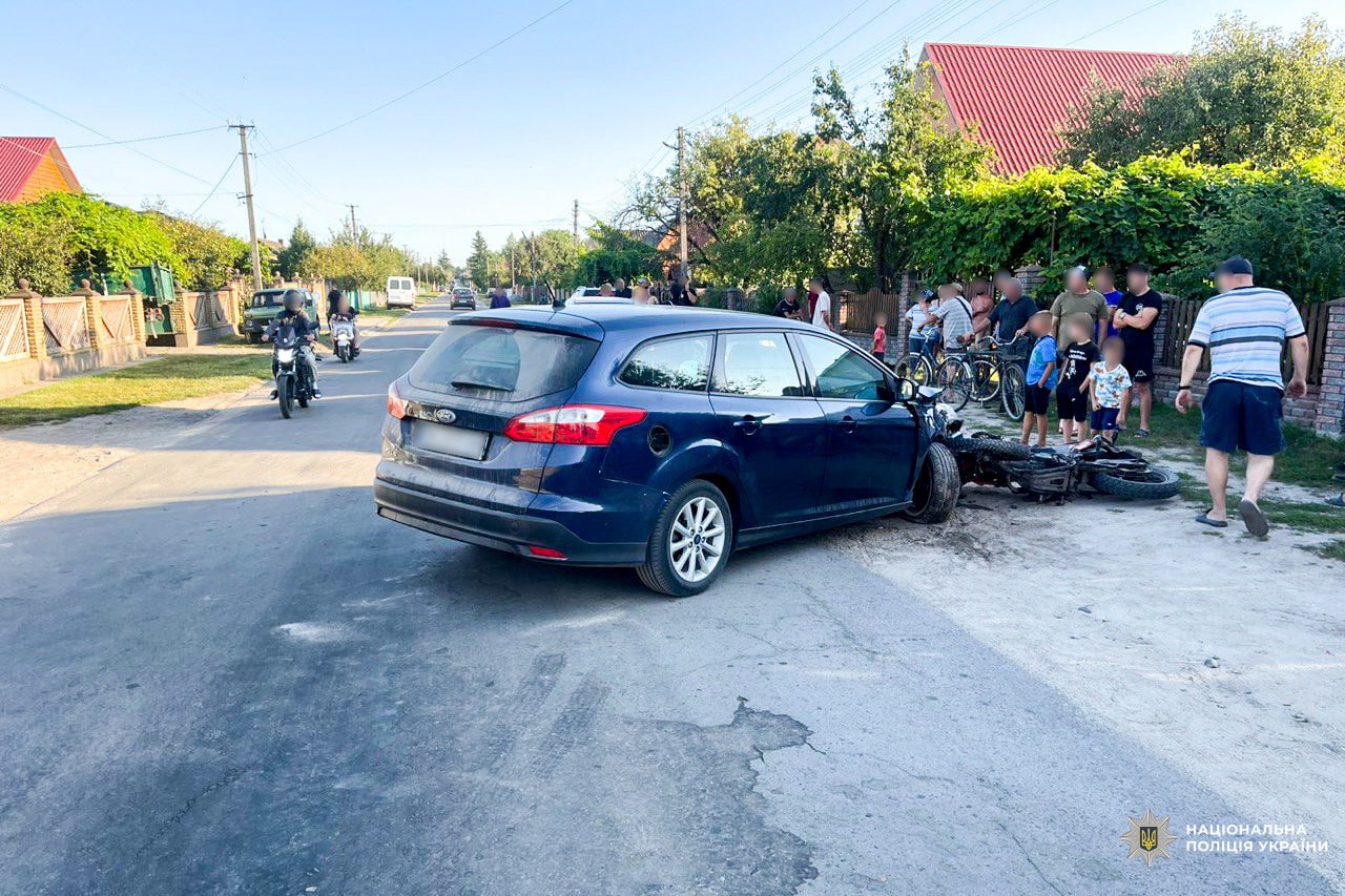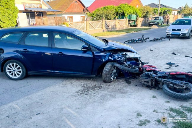 За інформацією поліції, 26-річна водійка автомобіля Ford Focus під час виконання маневру розвороту не пропустила мотоцикл Lifan під керуванням 16-річного односельчанина, внаслідок чого відбулося зіткнення.