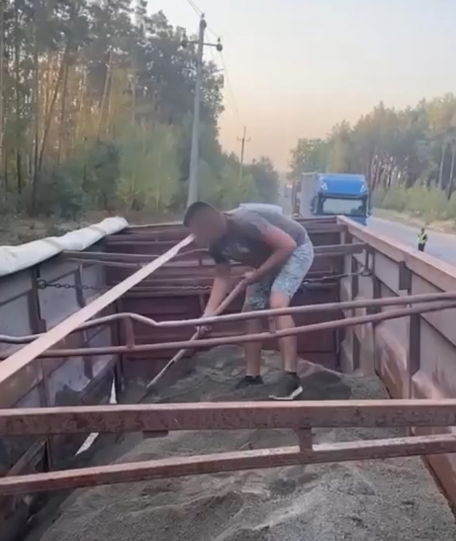 Після зупинки порушник почав скидати зайвий вантаж прямо на місці. Лиш після цього йому дозволили подальший рух.