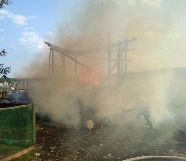 Через пожежу хлів з 70 тюками соломи та 7 м.куб. дощок згорів дощенту.