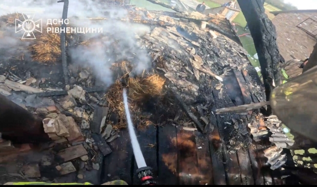 – Вогонь пошкодив перекриття на площі 20 м² та знищити покриття на площі 50 м² господарської будівлі. Жертв та постраждалих немає, – повідомили у ГУ ДСНС Рівненщини.