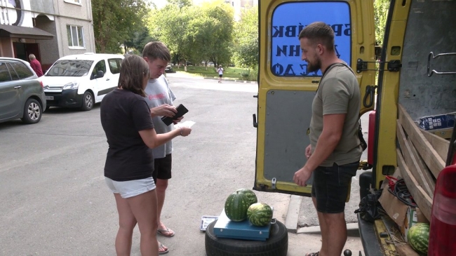Світлана живе неподалік місця, де торгує Роман. Вона розповіла, що оголошення про благодійний продаж кавунів побачила в чаті свого ОСББ. Жінка додала, що з радістю долучається до таких ініціатив.