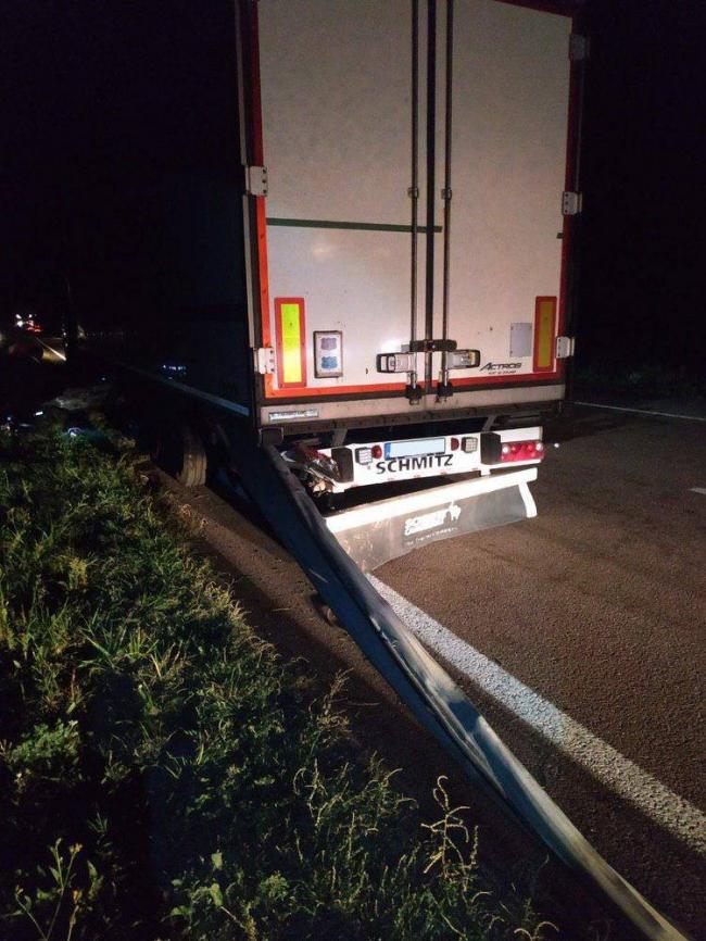 З’ясувалось, що вантажний автомобіль Вольво там зіткнувся з відбійником. Рятувальники за допомогою спецінструментів витягнули відбійник з причепа авто та змили паливно-мастильні матеріали з проїжджої частини дороги. Причини ДТП та завдані нею збитки встановлюють правоохоронці.