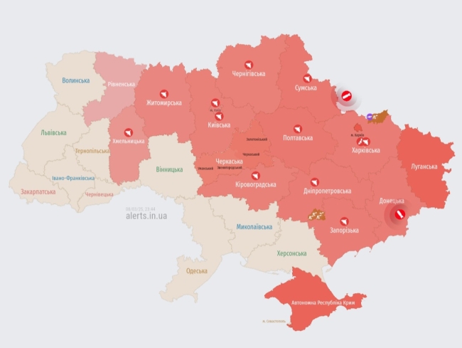 Як повідомили у Повітряних Силах ЗСУ, основна частина БпЛА нині зосереджена в Київській, Чернігівській та Житомирській областях. Курсом південно-західним.Також “шахеди” на півночі Хмельниччини, курсом на Старокостянтинів.
