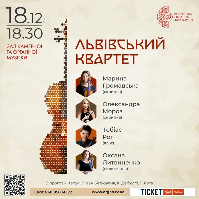 Молоді віртуози виконають шедеври камерної музики – 9-й Струнний квартет Л. Ван Бетховена (оp.59 N3) та Струнний квартет К. Дебюссі (оp. 10).