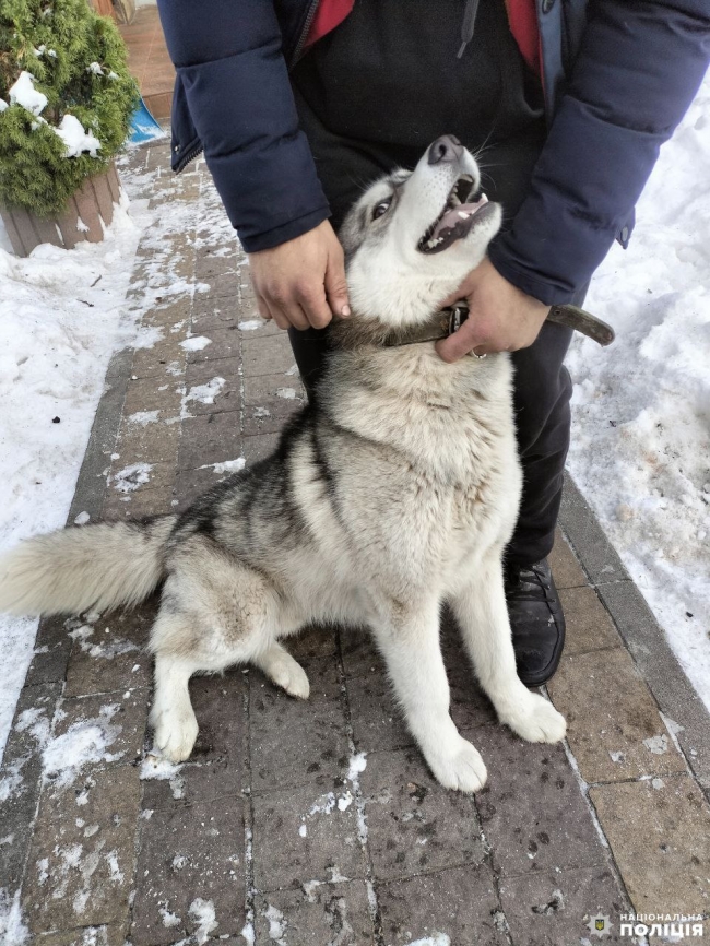 Хаскі, який блукав вулицями, прихистили небайдужі місцеві жителі. Саме збиралися шукати власника, як той разом із поліцейським приїхав забрати свого улюбленця.